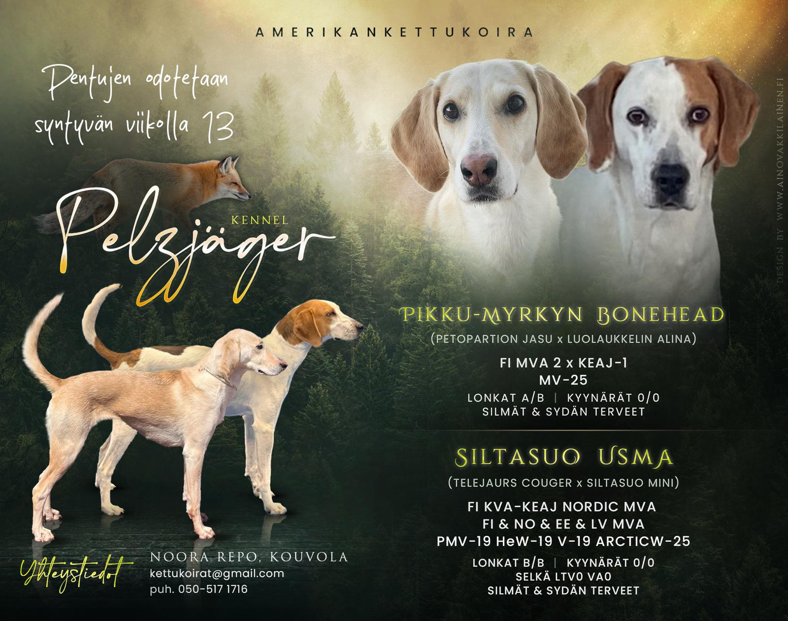 Usman ja Sampon pennut näkivät päivänvalon. Kaksi narttua ja kaksi uros pentua. Yksi narttu pentu sijoitetaan aktiiviselle harrastajalle jota kiinnostaa myös koe ja näyttely toiminta. Pentu tiedustelut: kettukoirat@gmail.com