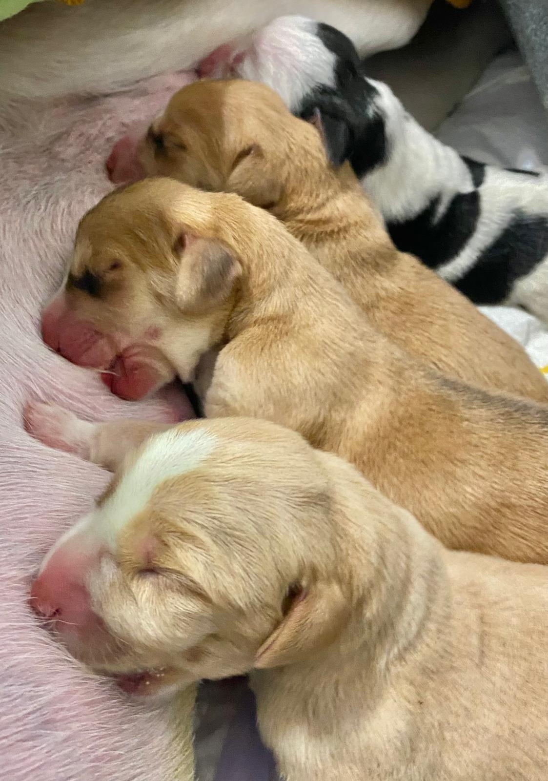 Karangon Toffee sai lauantai aamulla neljä pentua. Syntymä painot olivat 380-400g. Toffee hoiti kaiken alusta loppuun asti itse. Sai itse olla vain virallisena valvojana. Nyt pennut syö kovasti ja Toffee voi hyvin, syö ja juo normaalisti. Pissatus lenkit mennään vauhdilla, ja äänen kanssa takasin päin. Tässähän se loppuvuosi sitten menee seuratessa pentujen kehitystä ja touhuja.